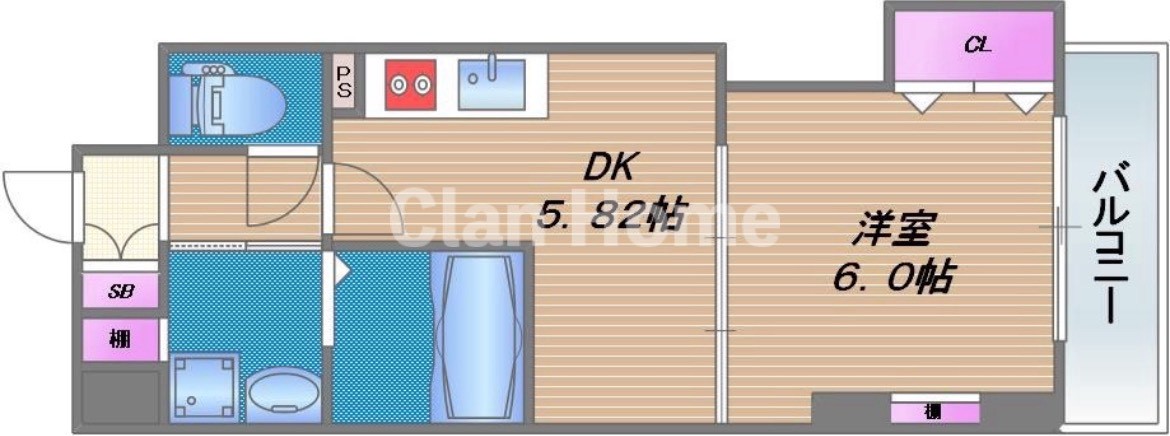 | 間取り | 1DK(DK5.8/洋室6)31㎡ |