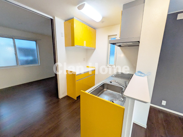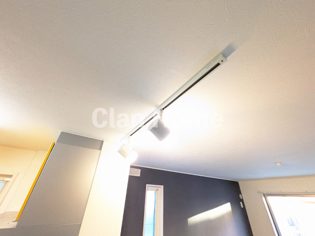 リビング全体が見渡せる対面式のカウンターキッチンを採用しています。3口ガスコンロが標準装備されたシステムキッチンで、調理スペースもしっかり確保されており、スムーズに料理を楽しむことができます。