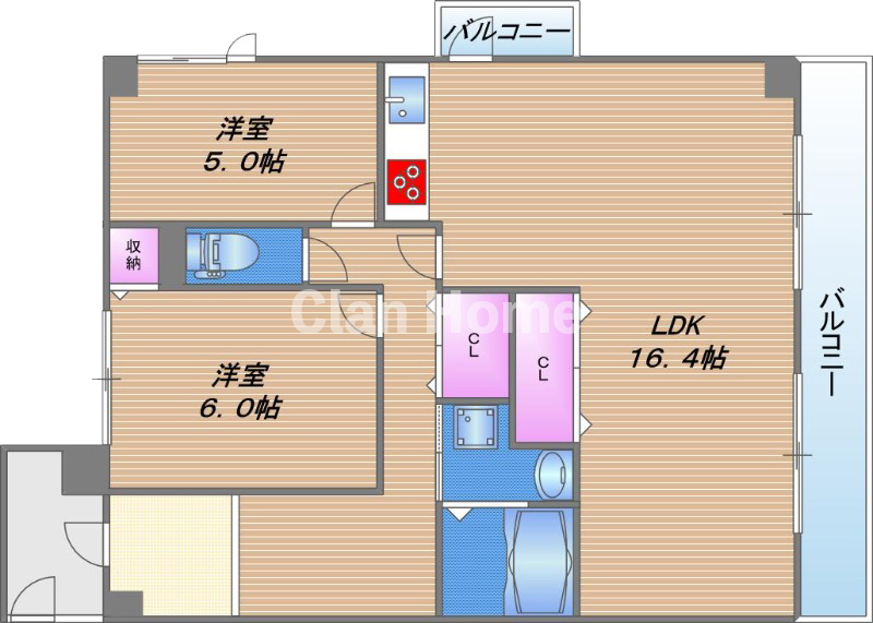 | 間取り | 2LDK [ LDK16.4帖、洋6帖、洋5帖 ] 65.7m2 |