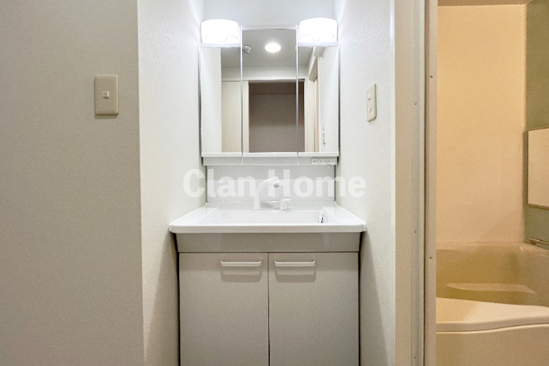 脱衣所は、忙しい朝もストレスなく過ごせるよう洗面所が独立した広々設計。清潔感のあるスタイリッシュなシャンプードレッサー(洗面化粧台)を採用しており、広い鏡と収納スペースで、化粧品や日用品もスッキリと片付きます。