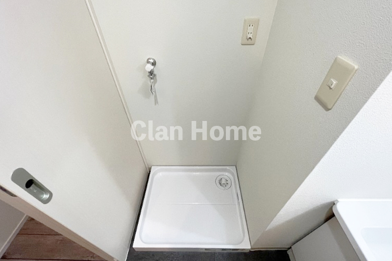 また、洗面所にしっかりとしたドア(仕切り)があるため、入浴中もプライバシーを確保でき、来客時や家族間でも気兼ねなく使用できるのが嬉しいポイント。洗濯機置場も同室内にあり、脱衣から洗濯までの動線がスムーズで、毎日の家事効率をぐんと高めてくれる、機能美に優れた空間です。