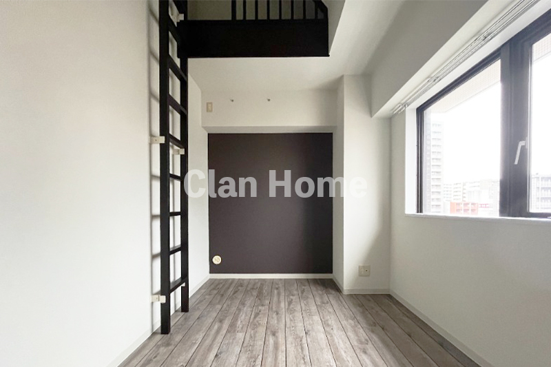 洋室は、数字以上のゆとりを感じる寝室設計 洋室(5帖)は、「少しコンパクトかな?」という印象を覆す機能的なレイアウト。セミダブルベッドを配置しても圧迫感が出にくい設計になっており、一日の疲れを癒やす寝室として十分に活躍します。高層階ならではの静けさが、より深い眠りをサポートしてくれます。