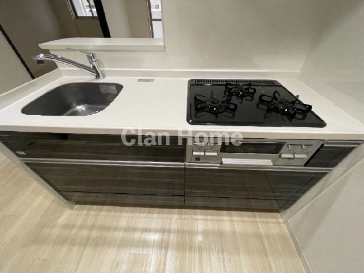 コンロは 3口 なので、同時調理ができて、忙しい朝や帰宅後でも効率よくお料理できますよ。