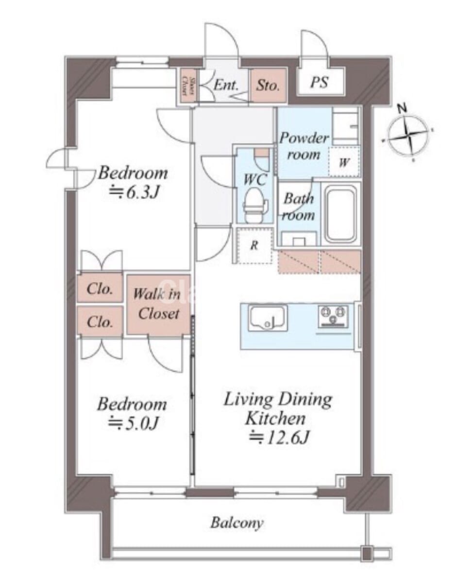 | 間取り | 2LDK(LDK12.6/洋室6.3/洋室5) 55.89㎡ |