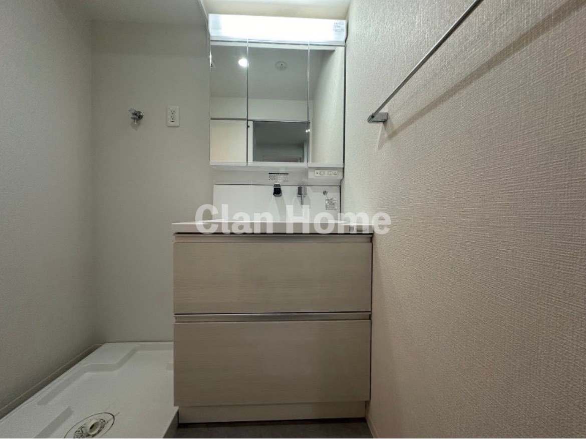 脱衣所には洗面下収納や棚を完備しており、洗剤・タオル・化粧品などをすっきり整理できます。
