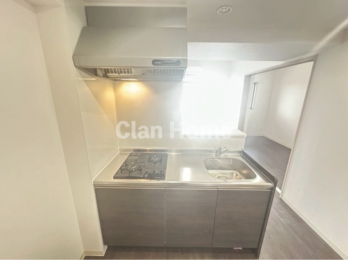 2口ガスコンロ付きで同時調理がしやすく、日々の自炊も効率よくこなせます。